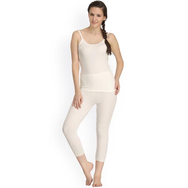 This off-white thermal set consists of a top and a pair of leggings